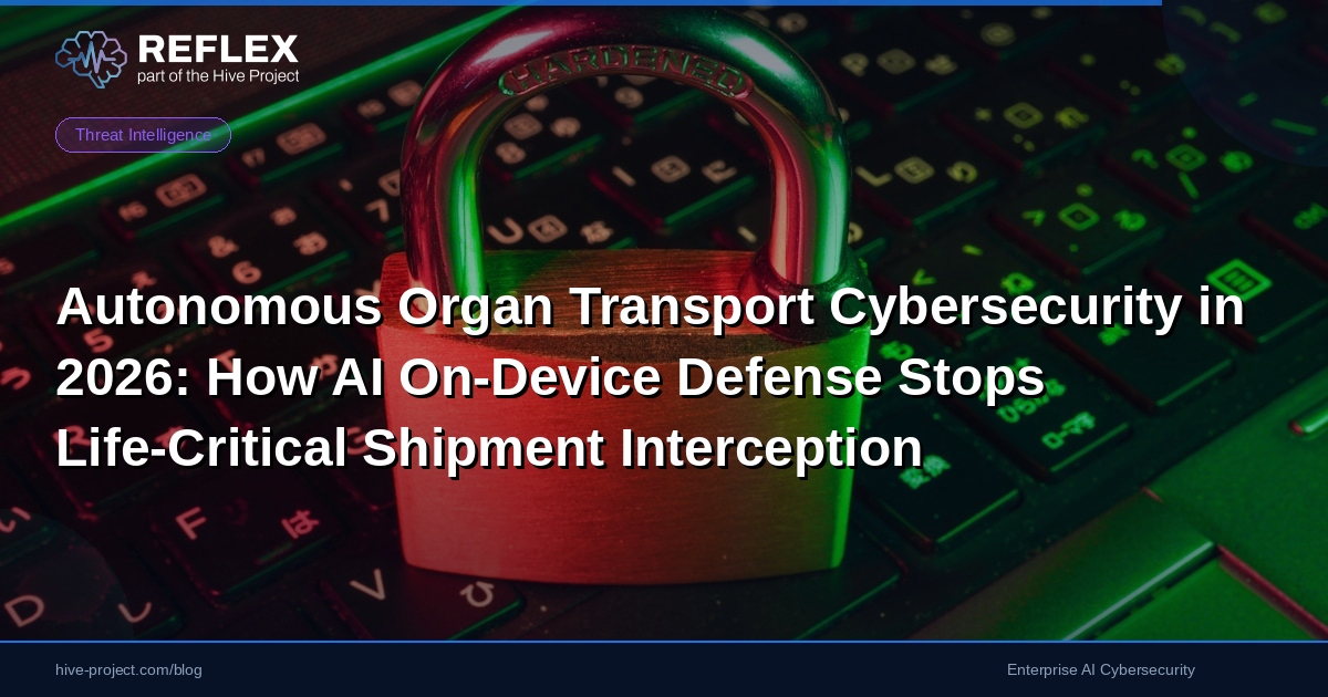 The autonomous organ transport revolution is saving lives in 2026 — but only if the systems delivering those organs are as resilient as the surgical teams receiving them. Attackers have already demonstrated the capability and motivation to intercept life-critical shipments, and the threat surface will only expand as adoption accelerates. Protecting these systems requires security that lives on the device, operates without connectivity dependencies, and detects threats faster than any human analyst could react. If your organization operates or oversees autonomous medical logistics, now is the time to evaluate an AI-powered, on-device defense strategy. Download Reflex Hive and protect the shipments that cannot afford to be compromised.